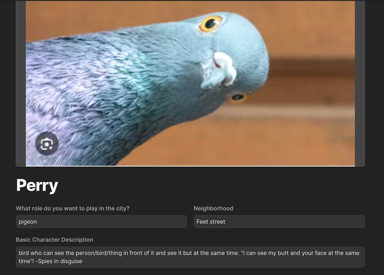 “I’m assigning you a special task with a pigeon named Perry to map out secret routes across the city for a secret project that a few colleagues and I have named “Operation Unity.” Hendrik, there is a rebellion of birds sparking in Hoboville, and we need your assistance in unifying all citizens for a stronger community. Is this understood, Aaldenberg?”