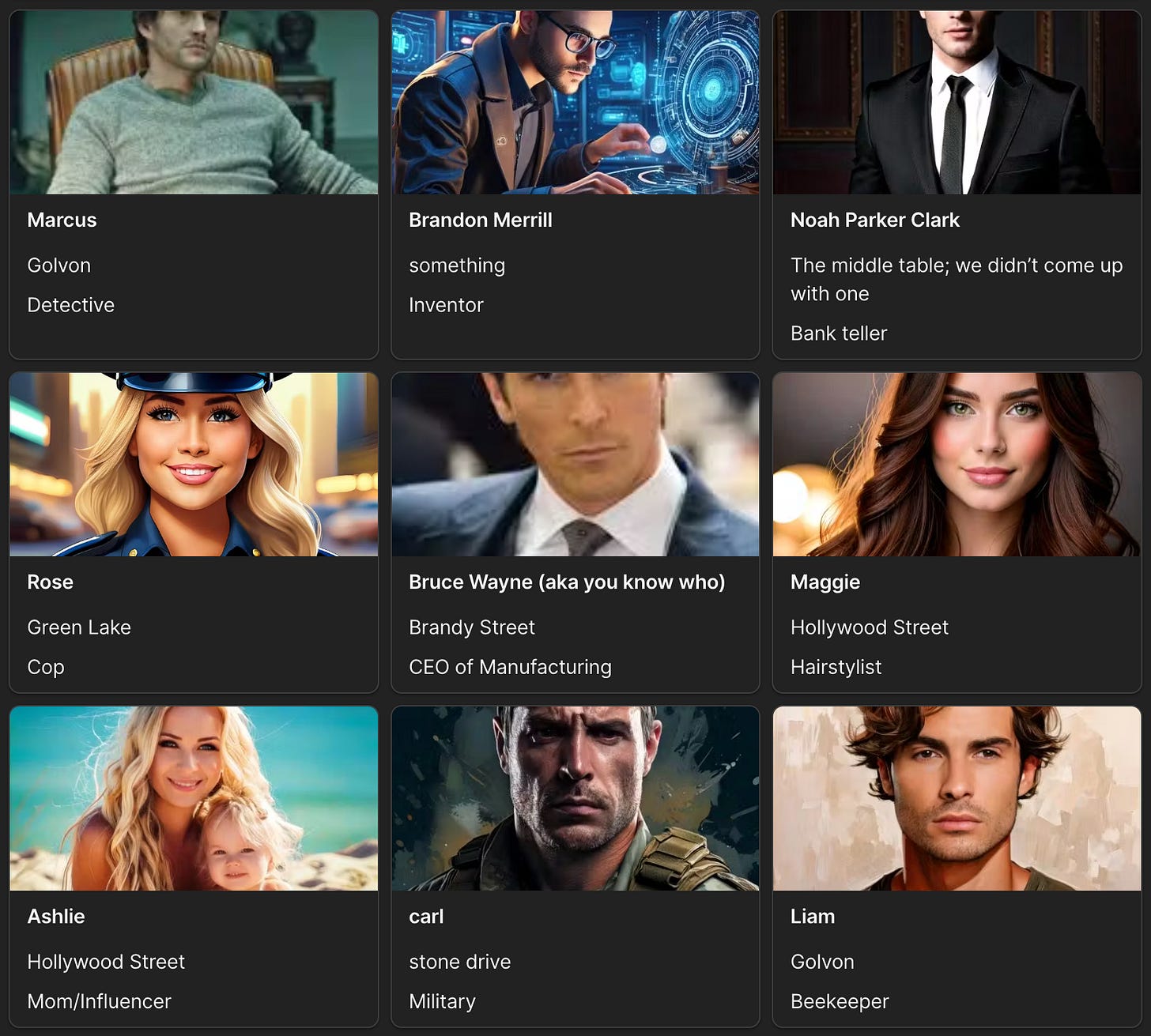 Some of the citizens in one of my class periods. (Yes a student decided to name their character after me lol.)